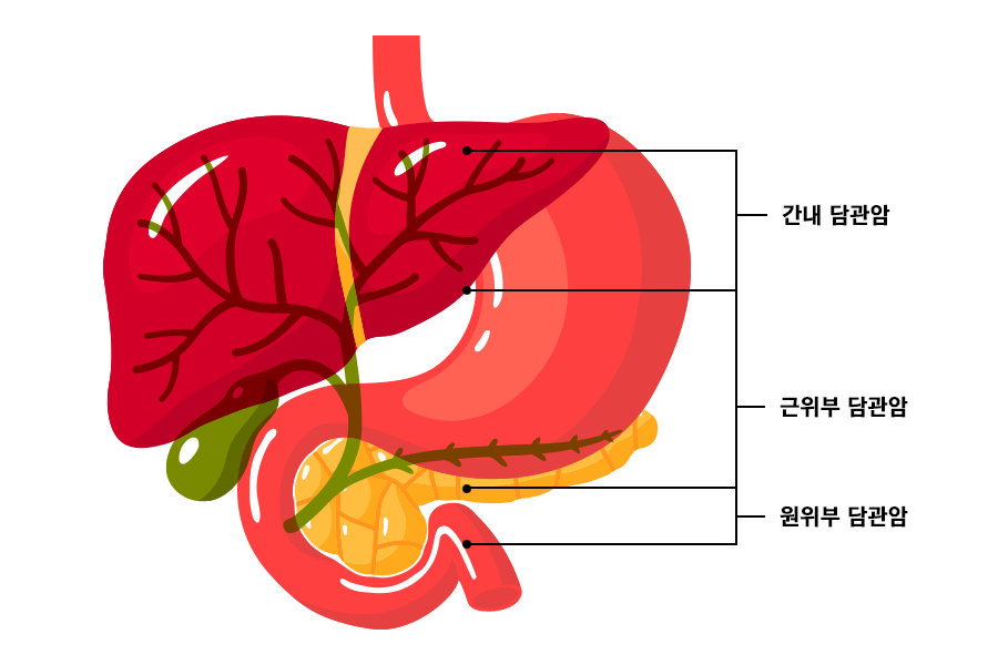 담관암은 담관에서 발생하는 암입니다. 담관이란 무엇입니까? 담관은 간에서 생성된 담즙을 십이지장으로 운반하는 관입니다. 담즙은 간세포에서 생성되어 간에서 흘러나와 십이지장의 유두를 통해 빠져나갑니다.