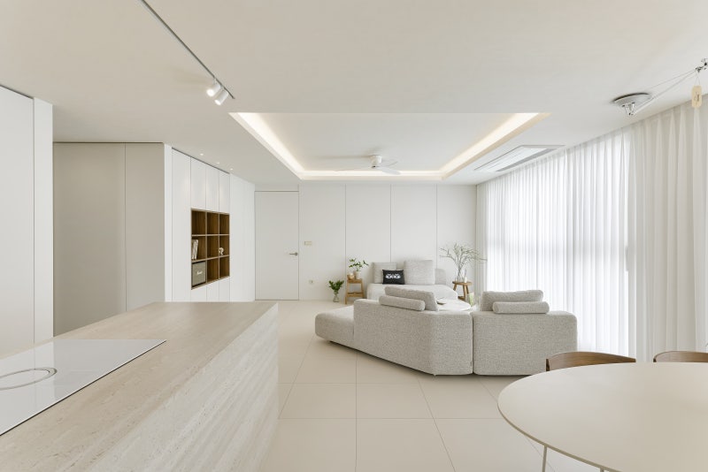 ▲ 거실에서 바라본 거실&주방 풍경 ▲ 주방에서 바라본 주방&거실 풍경 상큼하게 이어진 거실과 주방 공간은 과감한 철거와 독특한 가구 배치, 전체적으로 따뜻한 화이트 톤의 인테리어를 통해 더욱 넓고 개성 있는 공간이 되었습니다. 각 공간의 특징을 자세히 살펴보겠습니다! 우드 포인트가 돋보이는 화이트 수납 거실 인테리어 먼저, 가족의 휴식처가 될 거실 공간입니다. 감성적 숙소의 따뜻한 감성을 연상시키는 아늑하고 예쁜 인테리어가 눈길을 사로잡습니다. 전체적으로 밝은 톤의 화이트와 크림색의 인테리어 마감과 소파, 테이블 등의 컬러가 톤앤매너로 더욱 세련되어 보입니다. 거실 벽면에는 키가 큰 화이트 캐비닛을 배치해 자연스럽게 수납공간을 늘렸습니다. 키가 큰 캐비닛은 밝고 순수한 화이트보다는 안개 그레이라 불리는 차분한 화이트 톤에 그레이 한 방울을 섞어 감각을 더했습니다. 올화이트 룩으로 밋밋해 보일 수도 있었던 키 큰 캐비닛에 중앙에 우드 포인트가 들어간 선반을 두었고, 우드와 플랜터 인테리어 소품과 함께 거실 공간에 한 스푼의 감성을 더해주는 요소가 된다.동선 최적화의 주방 인테리어 주방 공간의 일부인 다이닝룸은 기존에는 벽 전체를 가득 채운 선반이 있는 알파룸 공간으로 활용되었다.주방과 거실 사이에 위치하여 선반만 보관하는 용도로만 사용하던 공간을 과감하게 가구에서 떼어내 다이닝룸이라는 새로운 공간으로 만들어 실용성을 높였다.기존 선반을 없앤 공간을 채워 포그 그레이 톤의 하부 캐비닛을 설치하고, 상단에 만든 넓은 빈 공간은 공간의 개방감을 크게 높이면서도 실용적인 활용이 가능하다.여기에 조명과 선반, 액자, 화분, 오브제 등을 배치해 더욱 매력적인 인테리어를 연출할 수 있다. 기존 주방은 L자형 싱크대와 주방 가장 안쪽에 작은 홈바로 구성되었지만, 철거 후 주방 중앙에 싱크대와 조리시설이 있는 대형 아일랜드를 배치하여 주방 레이아웃을 완전히 마주보는 주방으로 바꾸었습니다. 한쪽 벽면 전체에 깔끔하게 적용된 주방 수납장은 차분한 포그그레이 화이트 톤으로 빌트인 가전과 커스텀 가구로 구성하여 실용성과 디자인성을 모두 고려하였습니다. 침실 공간도 차분한 화이트 톤과 포그그레이 컬러로 효율적인 가구 배치에 집중하여 모든 공간을 정리하였습니다. 흔히 알려진 아파트 구조와는 다른 실용적이고 세련된 레이아웃의 34평 아파트 실내 현장이었습니다. 우리 가족을 위해 꾸며진 우리만의 공간에서 한층 더 높은 삶의 질을 누리실 수 있을 것입니다:) 인테리어 시공 정보 가구 소재 : 한솔 스토리보드 – 메인 | 포그그레이 – 포인트 | 시에라월넛 업체 정보 : 디자인코멘트 – 인스타 | @design_comment 광고 후 계속됩니다. 다음 주제 작성자 취소 실용적 거실 주방 가구 배치, 34평 아파트 인테리어 예쁜 집 재생 0 좋아요 0 좋아요 공유 0:00:00 재생 음소거 00:00 00:00 실시간 설정 전체 화면 해상도 currentTrack 자막 사용 안 함 재생 속도 NaNx 해상도 자막 사용 안 함 설정 옵션 글자 크기 배경색 재생 속도 0.5x 1.0x (기본값) 1.5x 2.0x 알 수 없는 오류가 발생했습니다. 도움말 음소거되었습니다. 도움말 라이선스 이 영상은 고화질로 제공됩니다. 설정에서 해상도를 변경해 보세요. 자세히 보기 0:00:00 접기/펼치기 실용적인 거실 주방 가구 배치, 34평 아파트 인테리어 예쁜 집 실용적인 거실 주방 가구 배치, 34평 아파트 인테리어 예쁜 집 #한솔홈데코 #한솔홈데코 #한솔스토리보드 #거실가구배치 #주방가구배치 #34평 아파트인테리어 #예쁜집 #랜선신축축하 #온라인신축축하 한솔포그그레이 더 많은 시공사례 보기 깔끔한 가구배치 아파트인테리어 마이너스옵션 시공 한솔포그그레이 깔끔한 가구배치 인테리어 아파트 마이너스옵션 시공 한솔포그그레이 안녕하세요, 한솔홈데코… blog.naver.com 우드포인트가 들어간 따뜻한 화이트 우드 아파트 인테리어 온라인신축축하 우드포인트가 들어간 따뜻한 화이트 우드 아파트 인테리어 안녕하세요, 한솔홈데코입니다. 홈인테리어 할 때… blog.naver.com 포그그레이 인테리어로 아늑한 주방, 거실, 현관, 랜선 이사꾸미기 포그그레이 인테리어로 아늑한 주방, 거실, 현관, 랜선 이사꾸미기 안녕하세요, 한솔홈데코입니다. 집은 쉬는 공간입니다… blog.naver.com 한솔홈데코 (@hansolhomedeco) • 인스타그램 사진 및 동영상 6,495명의 팔로워, 208명의 팔로잉, 617개의 게시물 – 한솔홈데코 (@hansolhomedeco)의 인스타그램 사진 및 동영상 보기 www.instagram.com