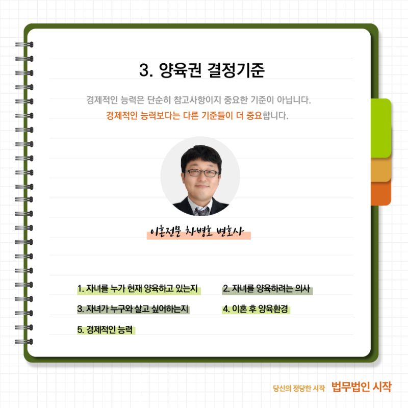 합의 이혼 양육권에도 상대방의 귀책 사유가 영향을 미친다고 했어요. 하지만 유책사유보다는 아동의 복리가 항상 최우선이 된다는 것을 잊지 말아야 한다고 말했습니다. 절혼이라는 것은 부부 둘만의 일이 아니라고 했습니다. 아이들은 물론 가족의 일이라고 했지만요. 본인들의 섣부른 결정으로 인해 많은 사람들이 피해를 볼 수 있다는 것을 인지해야 한다고 했습니다.